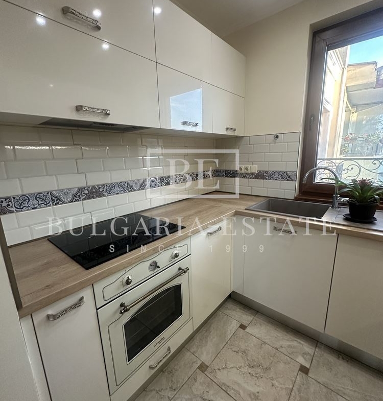 Жилището е с напълно монтирана и оборудвана кухня с висок клас електроуреди – миялна машина, хладилник, фризер, индукционни котлони, фурна, аспиратор и др.